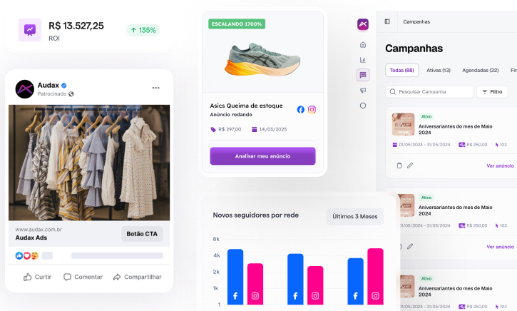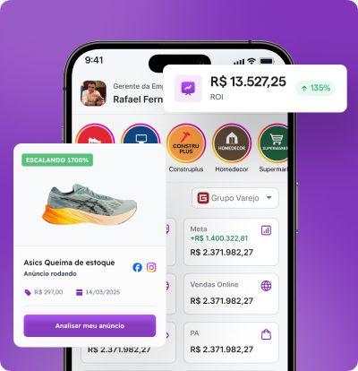 Gerencie redes sociais, anúncios e campanhas — tudo em um só lugar, feito para lojistas grande, pequenos e médio porte.